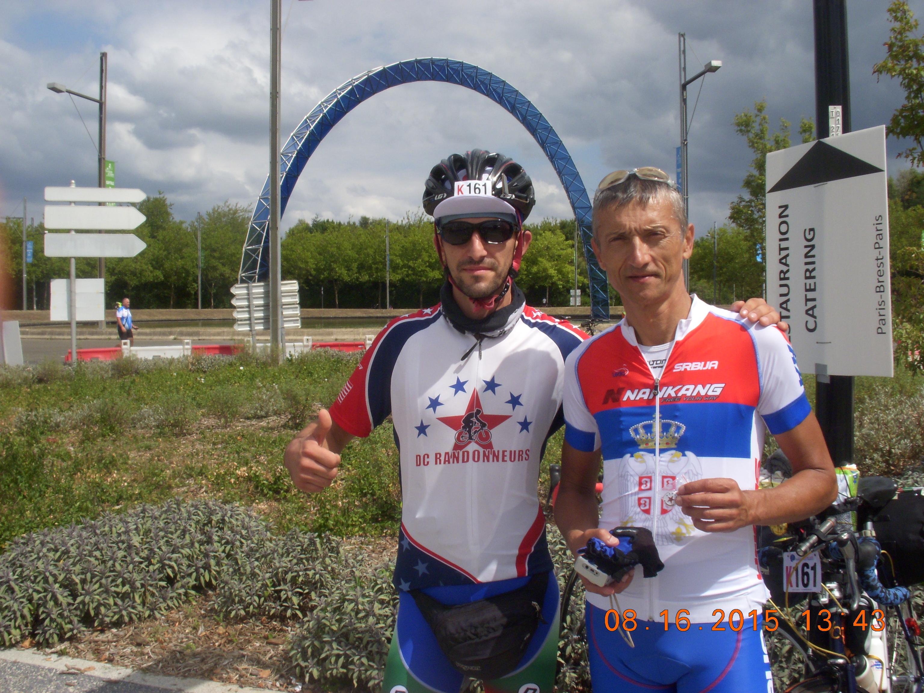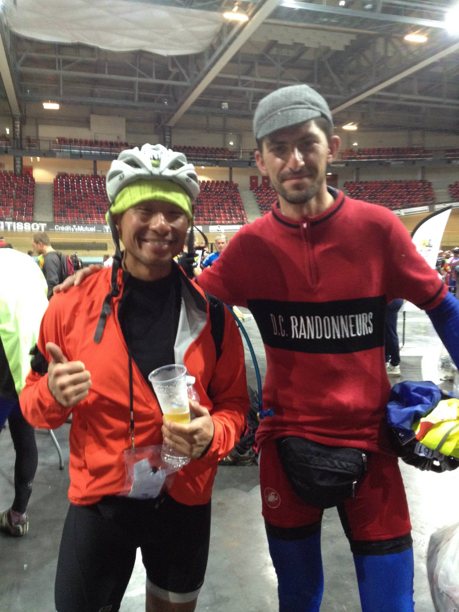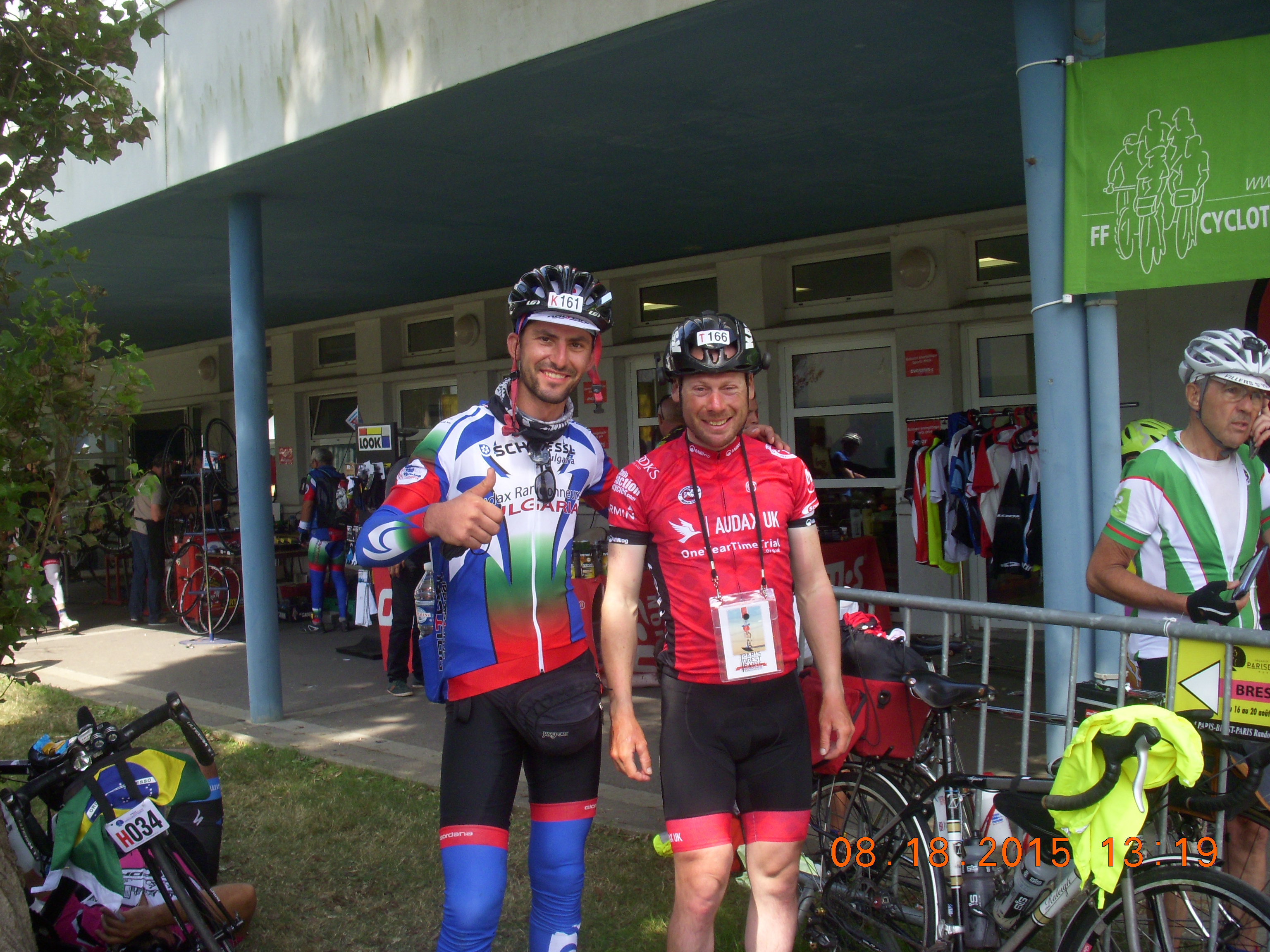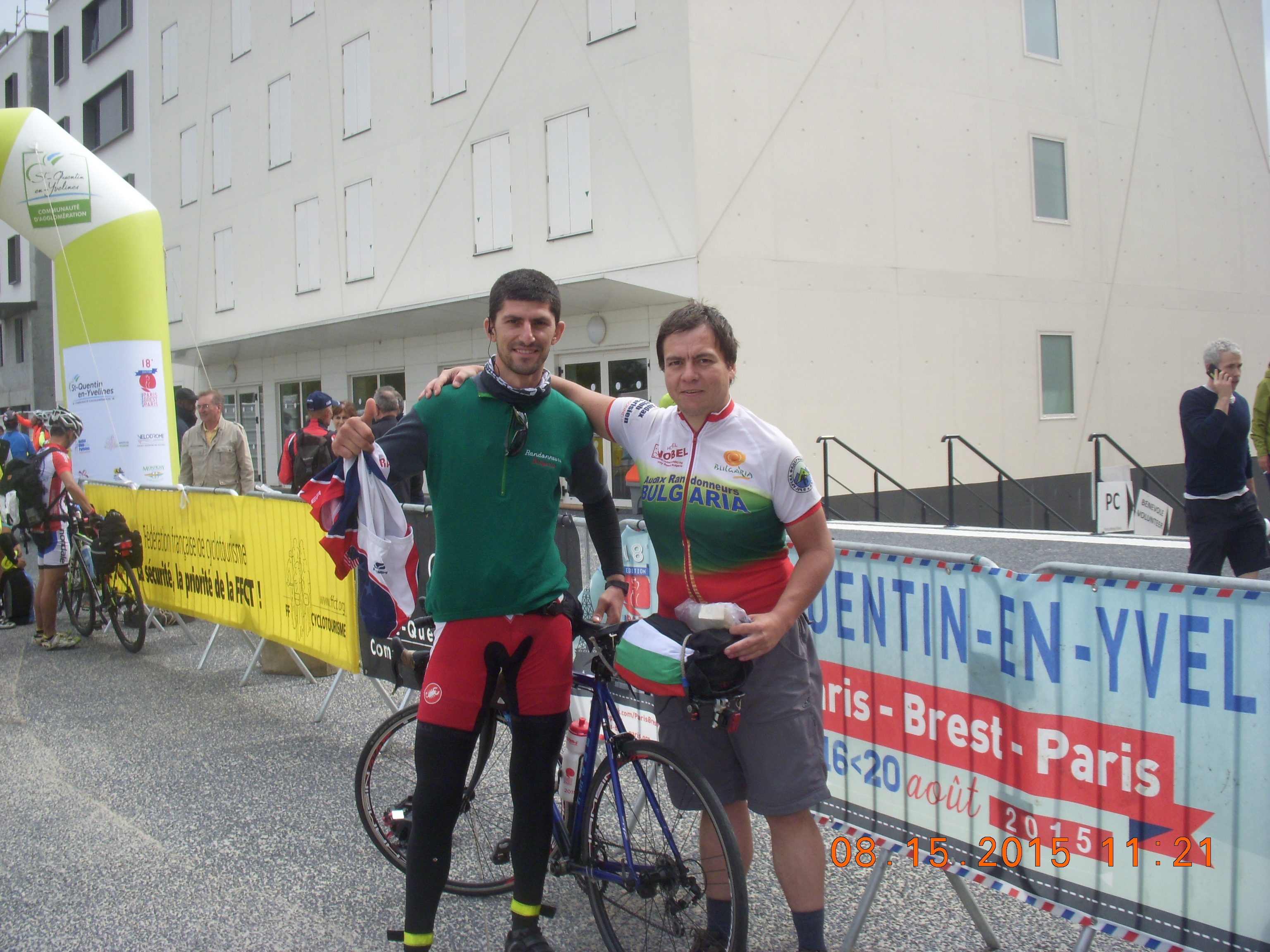 Last two days I rode with Plamen Bayraktarov from Haskovo. His bike was also  stolen. He was riding a with regular handlebars and could not change his hand position, so his hands were in pretty bad shape. He could not even clip to the pedals with his shoes, because they were ordinary shoes and normal pedals. We finished together as we helped each other a lot. Respect to him for doing it. All Bulgarian stayed strong. Collected money and rented some bikes hours before Paris-Brest-Paris started. Hats down to all four of them on regular bikes.