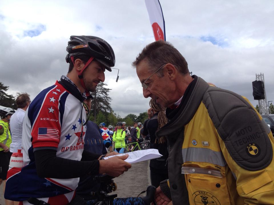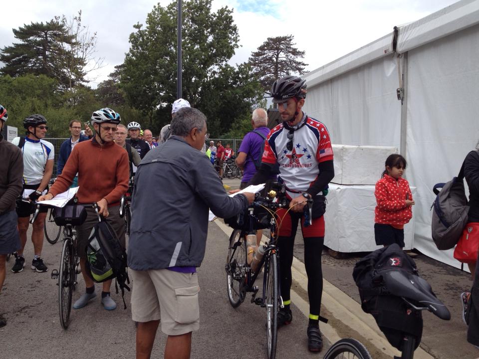 At registration we were greeted by the first person in RUSA – Jennifer Wise . Then the French quickly checked my bike. I grabbed my official water bottle, jersey, vest and was all ready to go.