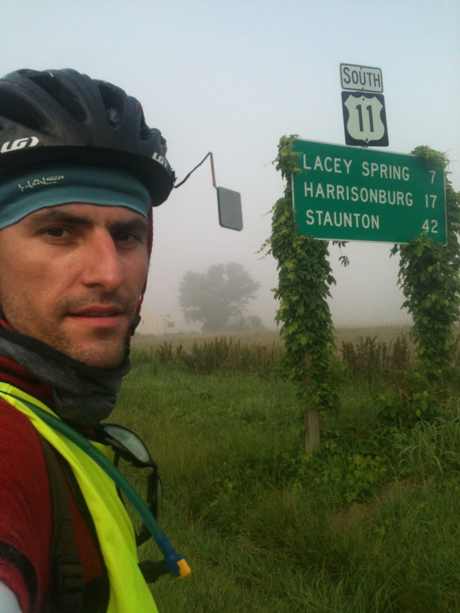 It creates surreal mesmerizing effect over the Shenandoah Valley . We were very lucky with the weather on both days. Clouds were protecting us from the sun and the wind pushing us forward . Hamid told me that we will get double tail wind . I laughed . It turned out he wasn’t lying . The wind was behind us, pushing us along the road like a good friend until the end . . .