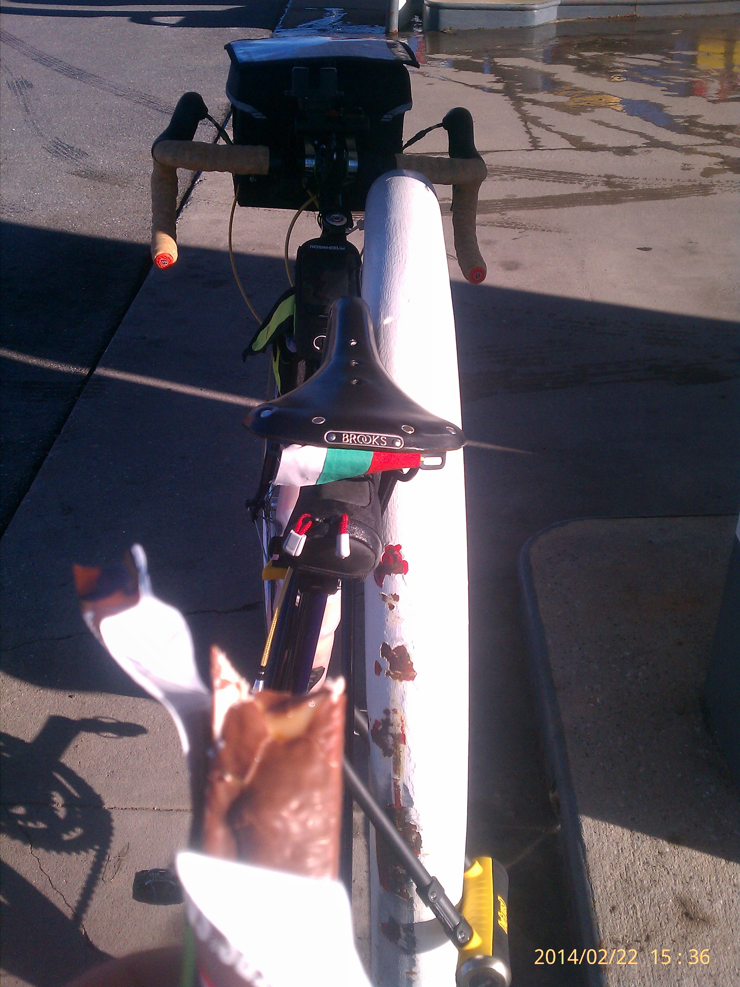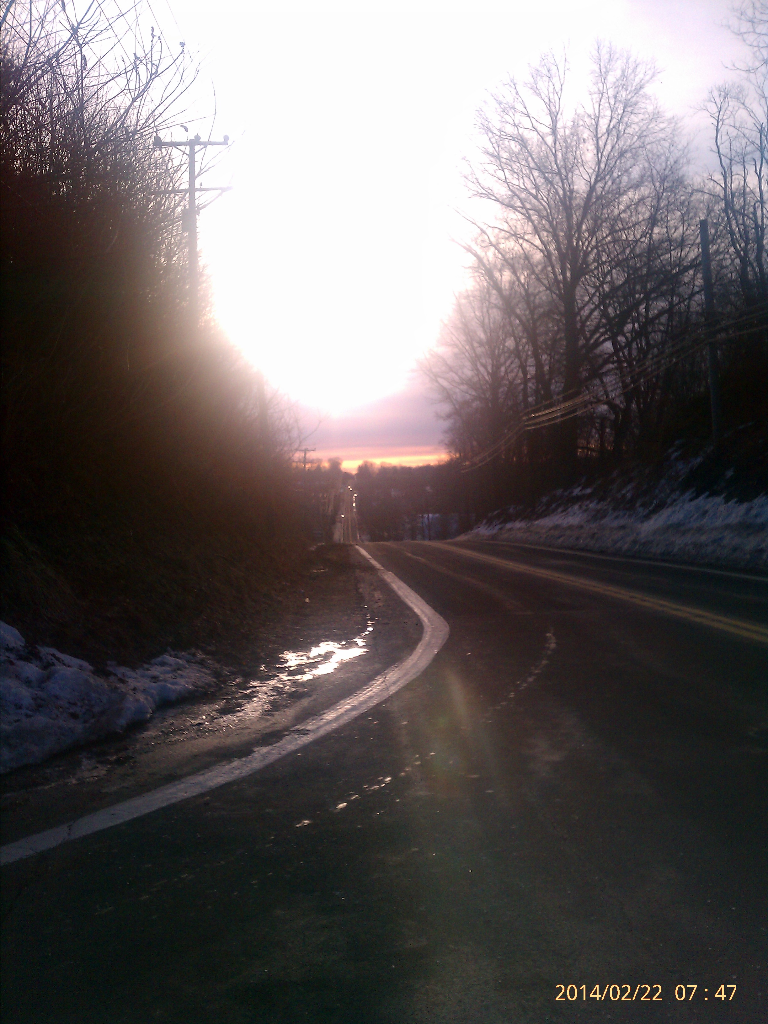 Not too long after at around mile 6 , I was going uphill by Triadelphia Rd. I noticed few areas with black ice because it was at higher elevation, and in a shaded area surrounded by trees. Before you know it, I slid and fell on my left side. There was not much time to react. The result was hitting my head , small bruise on my leg and bending my left Shimano 105 shifter hood.