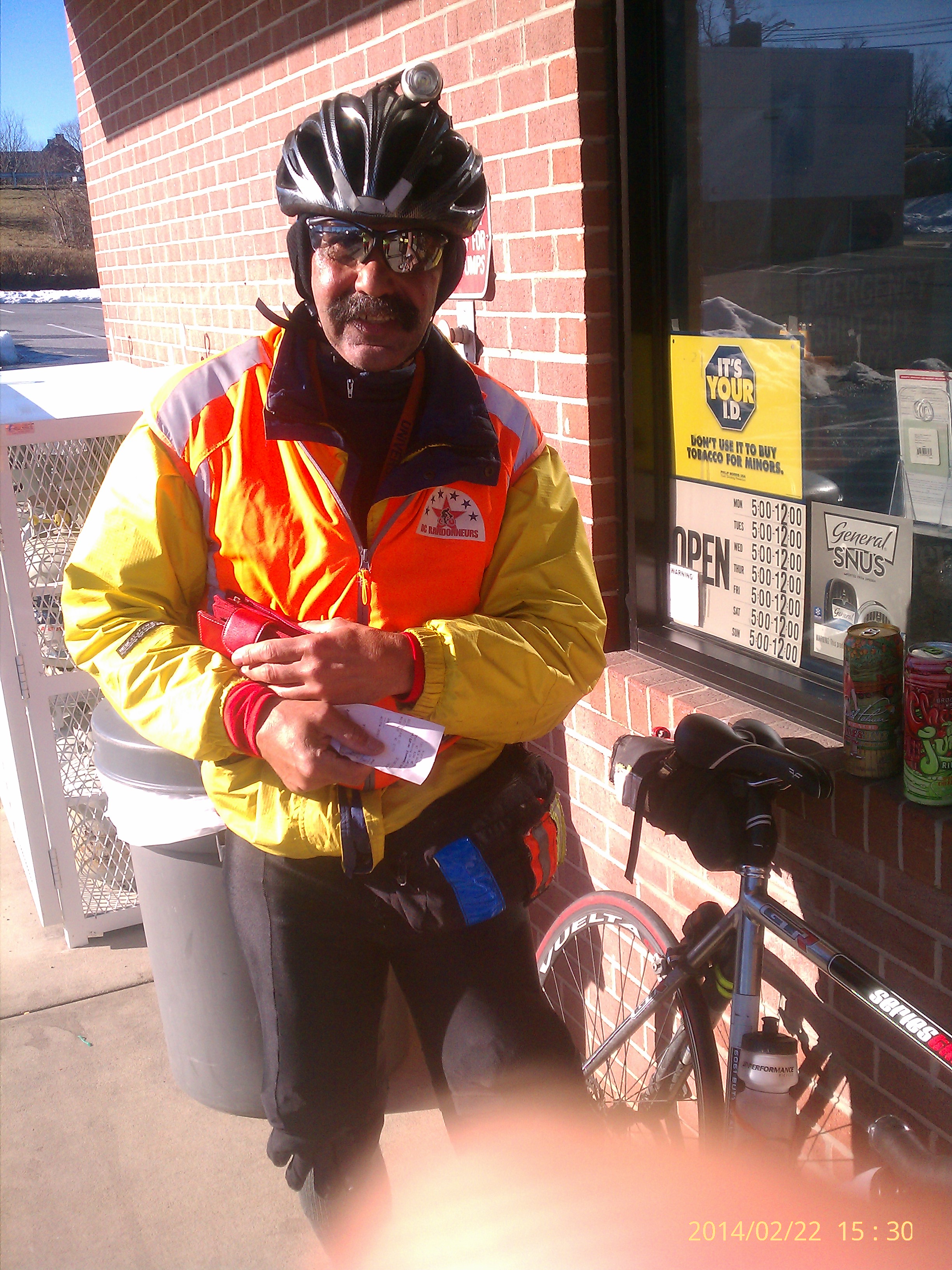 There were not many other cyclist on the road. I passed a man who appeared to be a randonneur as well , greeted him and continue pedaling. Few miles later I was in Mt. Airy. My next control was there at Highs Shell. I got batteries for my GPS and Snickers Ice Cream – suggested by a fellow randonneur from Bulgaria. He actually posted it in Facebook in responce to one of the photos I published during the ride. He did not explain to me how ice cream is helping in endurance events, but it sure taste good :) On my way out of Shell I bumped second time into that fellow rider I met few miles back. Now I noticed that he had a DC Randonneurs logo on his Vest. His name was Rudy and he was also doing a 200km brevet . Such a coincidence! We took pictures of each-other , shaked hands , exchanged few words of encouragement and continued with our endeavors.