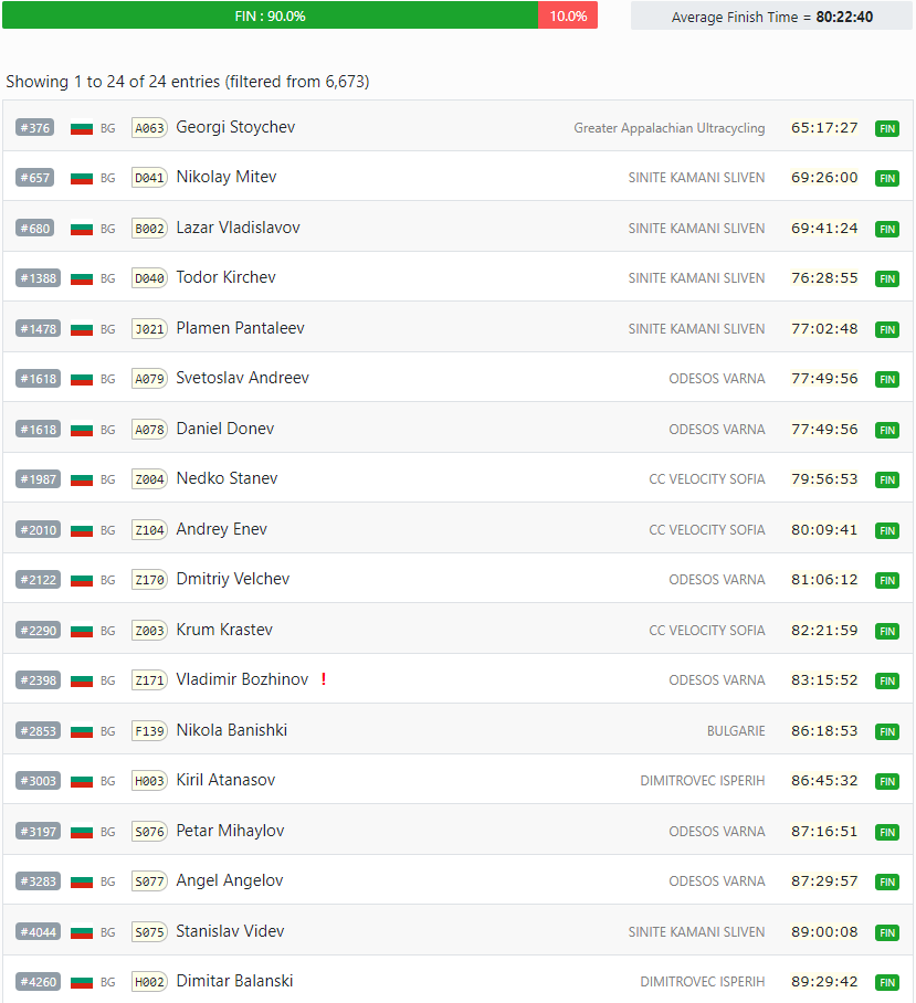 Класиране на Българите. Моето време е 4 то най-добро за всички участия и първи през 2019