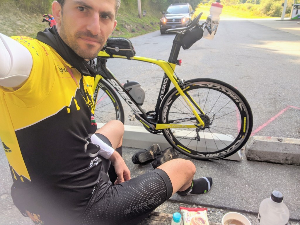 The interesting thing was that there is no offcials around you, no aid stations, not even many racers and you start at different times. It was just a wild guess how you stack against the competition. All I could do is give it my best and move on. The final Section was just 6 miles away, I was cooked, legs were sore and my heart felt like is going to come out of my chest. I did stop once again at a gas station to refuel and catch my breath. Upon exiting the gas station I was met by an older gentleman who was also doing the Fondo but a shorter version of it. He actually though i looked like George Hincapie and decided to stop and say hi. How funny is that.