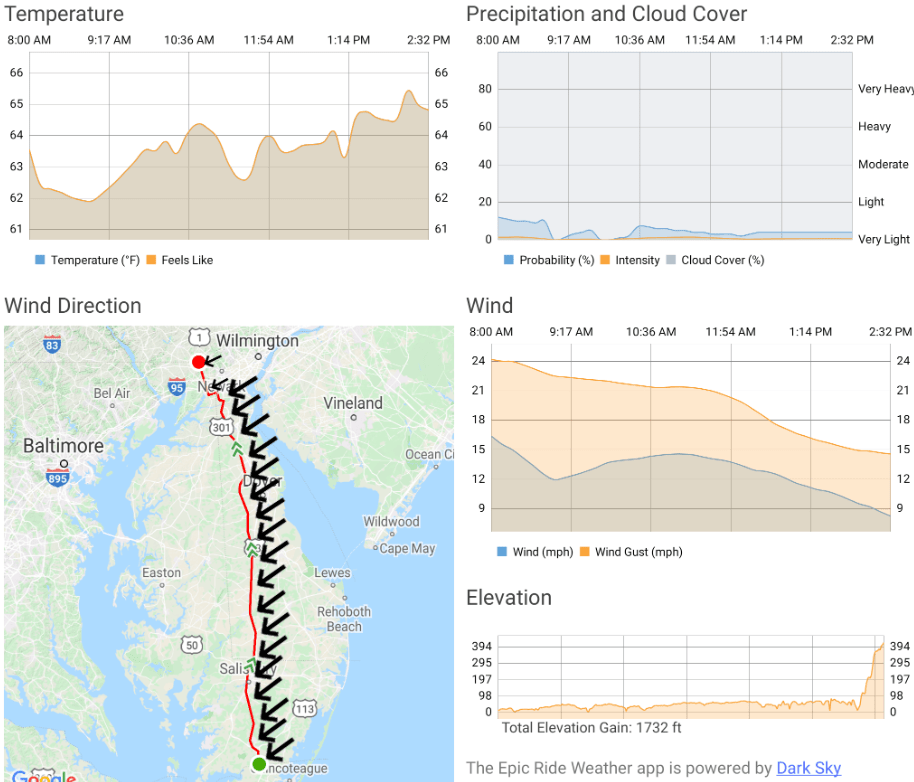 On September 19th I will be challenging the existing Maryland S-N cross state record of 139 miles (222km) . The current record is 8h8min and average speed of 16.97 Mph ( 27.31 km/h). The 33 stop signs and 19 Traffic Lights will slow me down a bit but worse at the moment is the headwind prediction. This will make it more interesting.